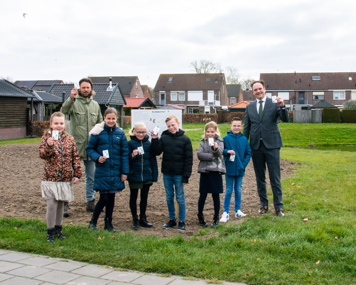De aftrap van het zaaifestijn begon in de ochtend met Maarten Slingerland, wethouder Gemeente Zwartewaterland. Hij strooide samen met een aantal kinderen het eerste zakje bloemzaad uit.